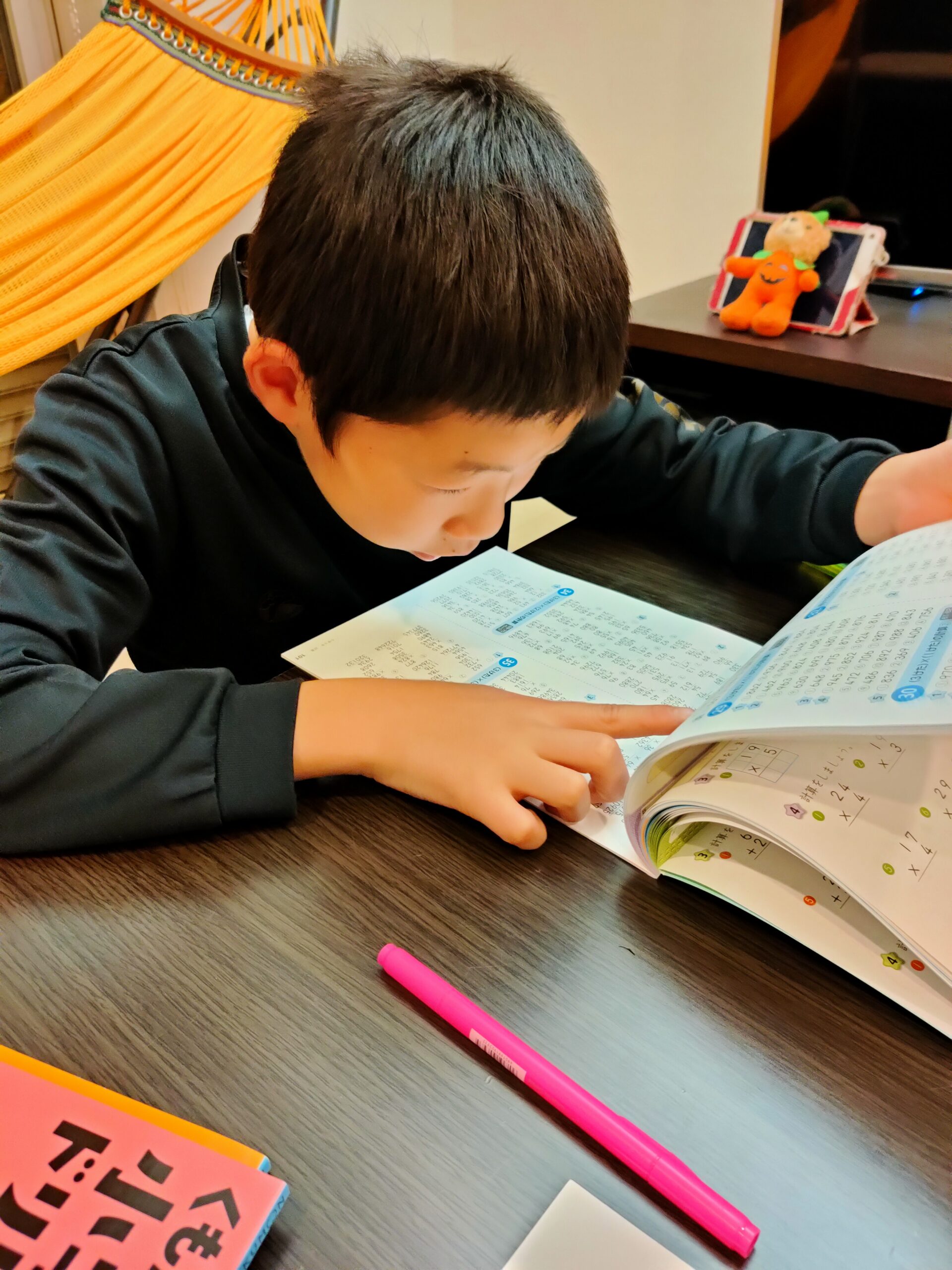 四則計算(×+-)に15回以上挑戦!アルファベット小文字は復習!そして完璧に!時間も大幅に短縮!とにかく集中力が凄かったですお勉強中の様子より